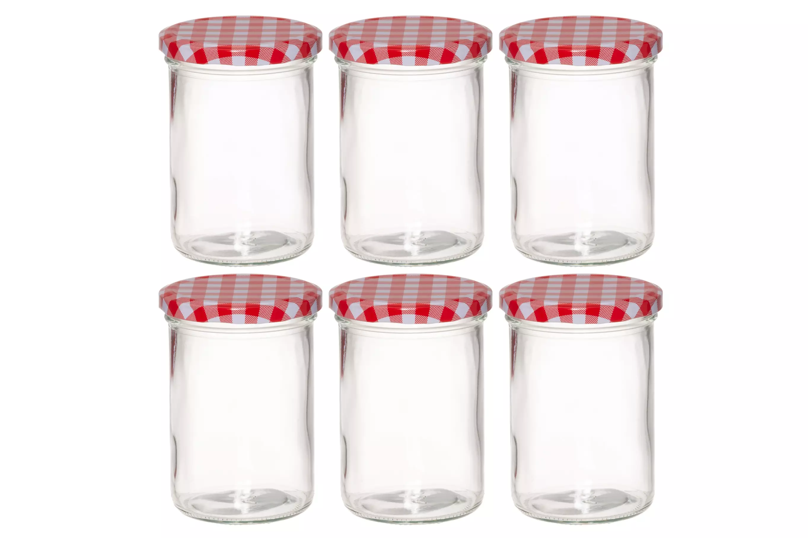 Klassinen hillopurkki punavalkoruudullisella metallikannella. Vetoisuus 440 ml. Kansi käsinpesu. Purkki konepesun kestävä.