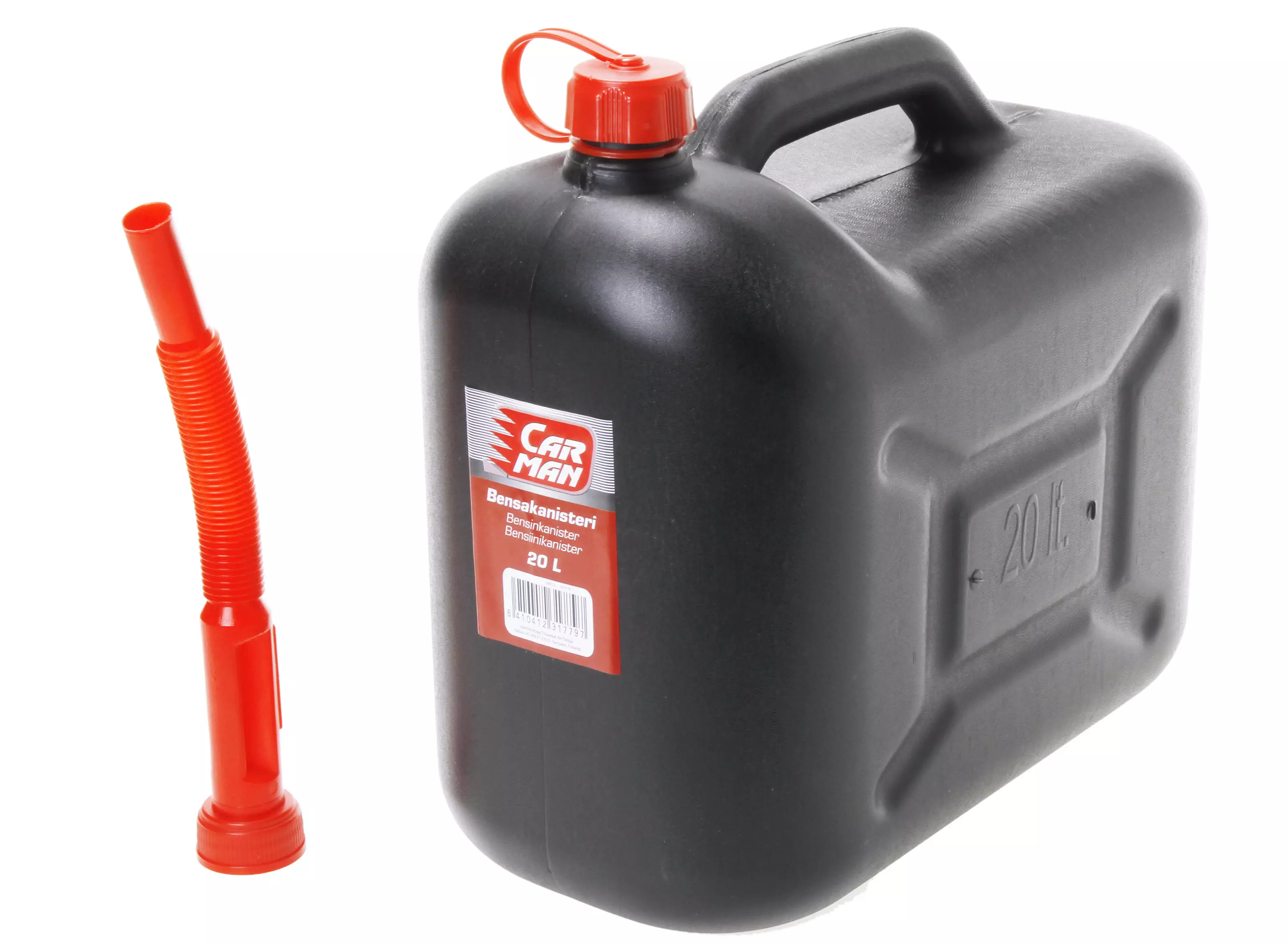 Musta bensakanisteri, irrotettavalla kaatonokalla. UN-hyväksytty.