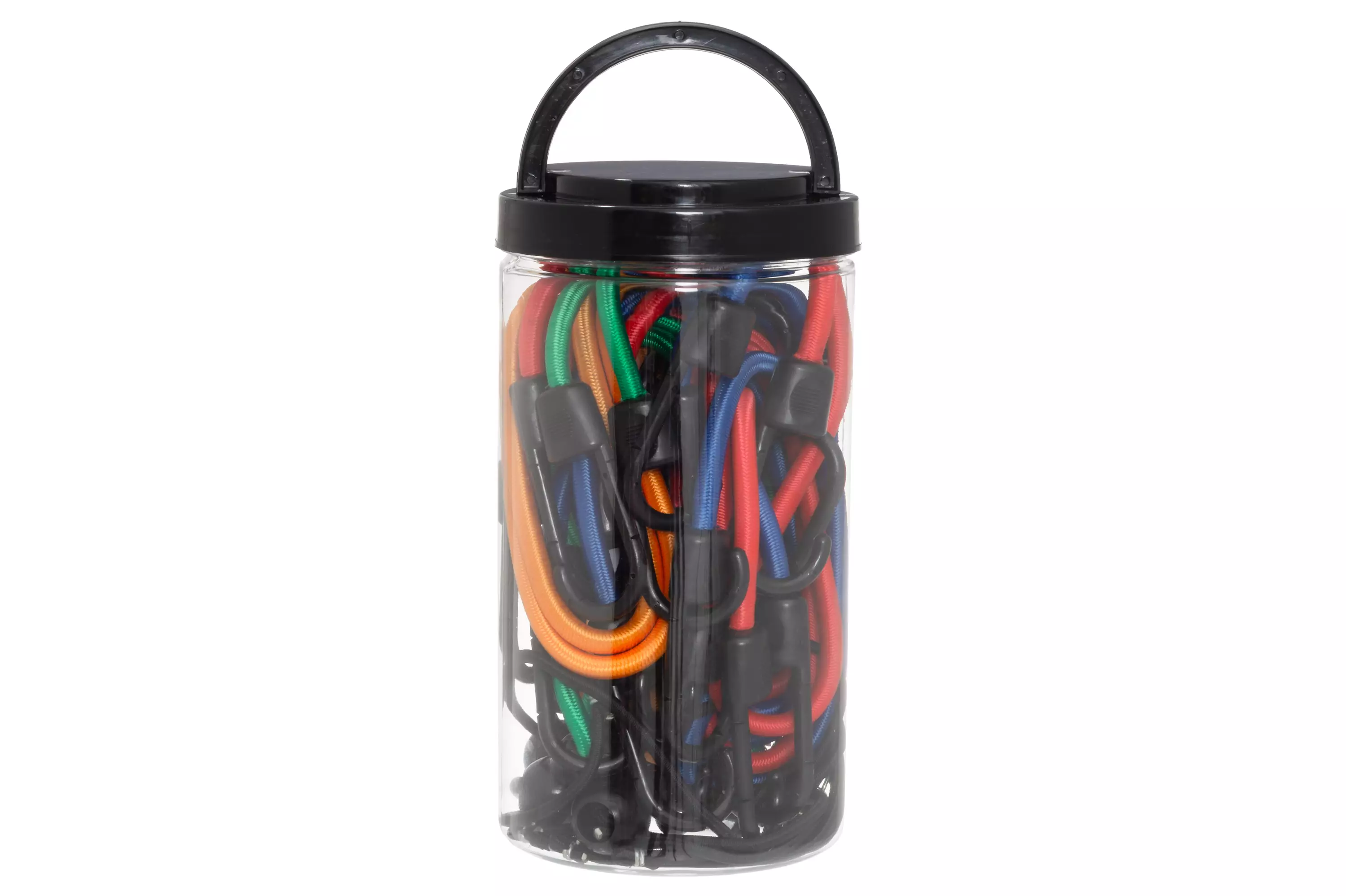 Sarja sisältää mustekaloja muovipäällysteisillä teräskoukuilla ja kiinnityslenkkejä erilaisiin kiinnityksiin ja kuormansidontaan. Pakkauksen sisältö: - mustekalat: 6x45cm, 4x60cm, 2x80cm ja 2x100cm. - minimustekalat 6x25cm. - kiinnityslenkit 4kpl. Mukana kannellinen säilytyspurkki.