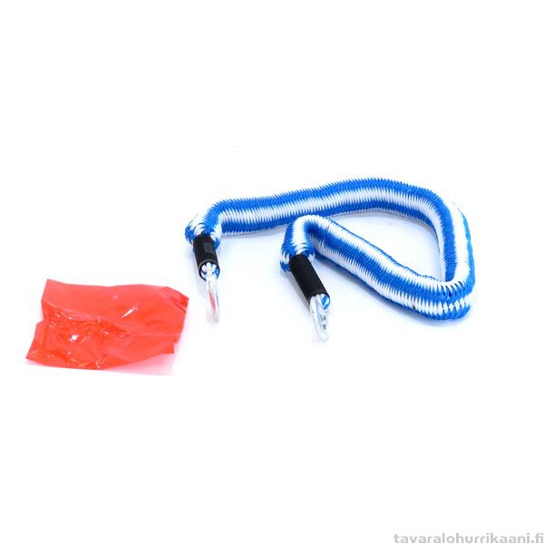 Hinausköysi, elastinen. Elastisuuden vuoksi vetäminen on mahdollista ilman nykimistä eikä köysi laahaa maata.