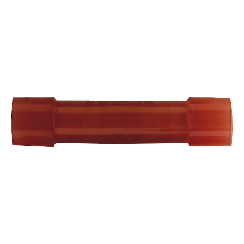 Eristetty johtoliitin, jatko, 3,8, punainen. Polyamidieriste. Johtimen poikkileikkaus/halkaisija vähint./enint.:0,5-1,65 mm². IP-pussi 4 kpl.