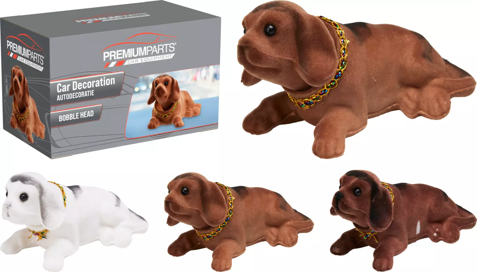 Valmistettu kestävästä polyesteristä, koriste on kevyt ja kestävä. Kolme värivaihtoehtoa (valkoinen, tummanruskea ja vaaleanruskea) tekevät siitä hauskan ja persoonallisen lisän autoon.