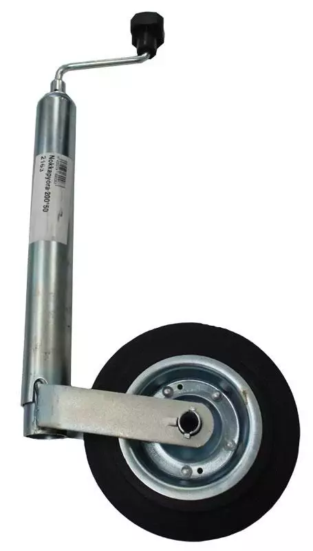 Peräkärryn nokkapyörä metallivanteella. Sopii erinomaisesti jarruttomiin peräkärryihin ja venetrailereihin.