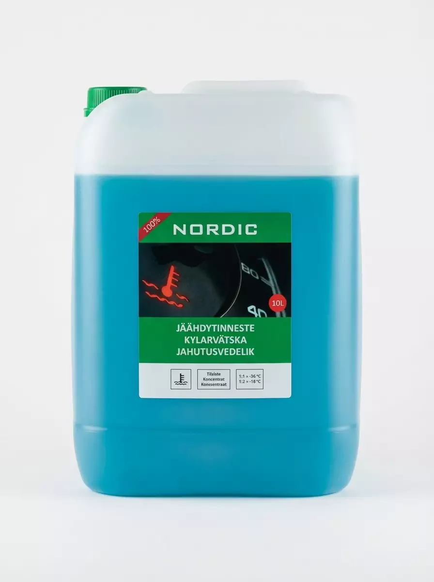 Huolehdi moottorin jäähdytysjärjestelmän luotettavasta toiminnasta – tilaa Nordic Jäähdytinneste 100% 10 L ja varmista tehokas suoja ympäri vuoden.