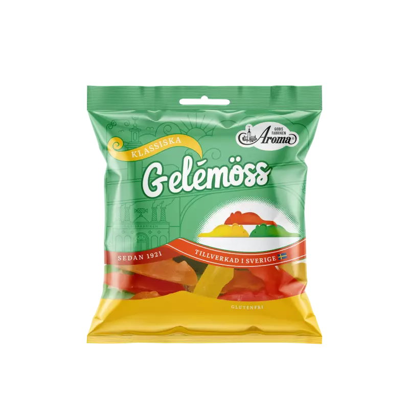 SE/DK/NO Ingredienser: Socker/sukker, glukossirap/glucose syrup, gelatin,surhetsreglerande medel/surgjaringsmiddel/forsurende middel E330, vegetabilisk olja (kokosolja), ytbehandlingsmedel/overflatebehandlingsmiddel E901,aromer, fargamnen/fargestoffer/farvestoffer E120, E141,E160a.