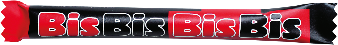 Bis Bis-täytelakritsipatukka 14g, joka kätkee sisälleen pehmeän salmiakilta maistuvan sisustan.