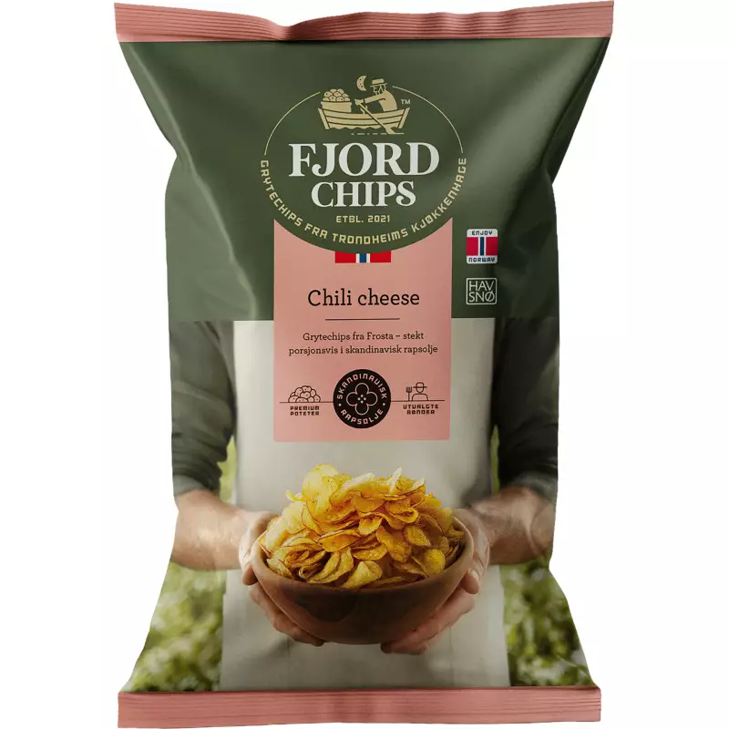 FjordChips-chilijuustosipsit on inspiroitu amerikkalaisesta chilijuustovälipalasta. Mausteseos yhdistää kermaisen cheddarin ja aidon jalapeñon, luoden täyteläisen ja tasapainoisen makukokonaisuuden.