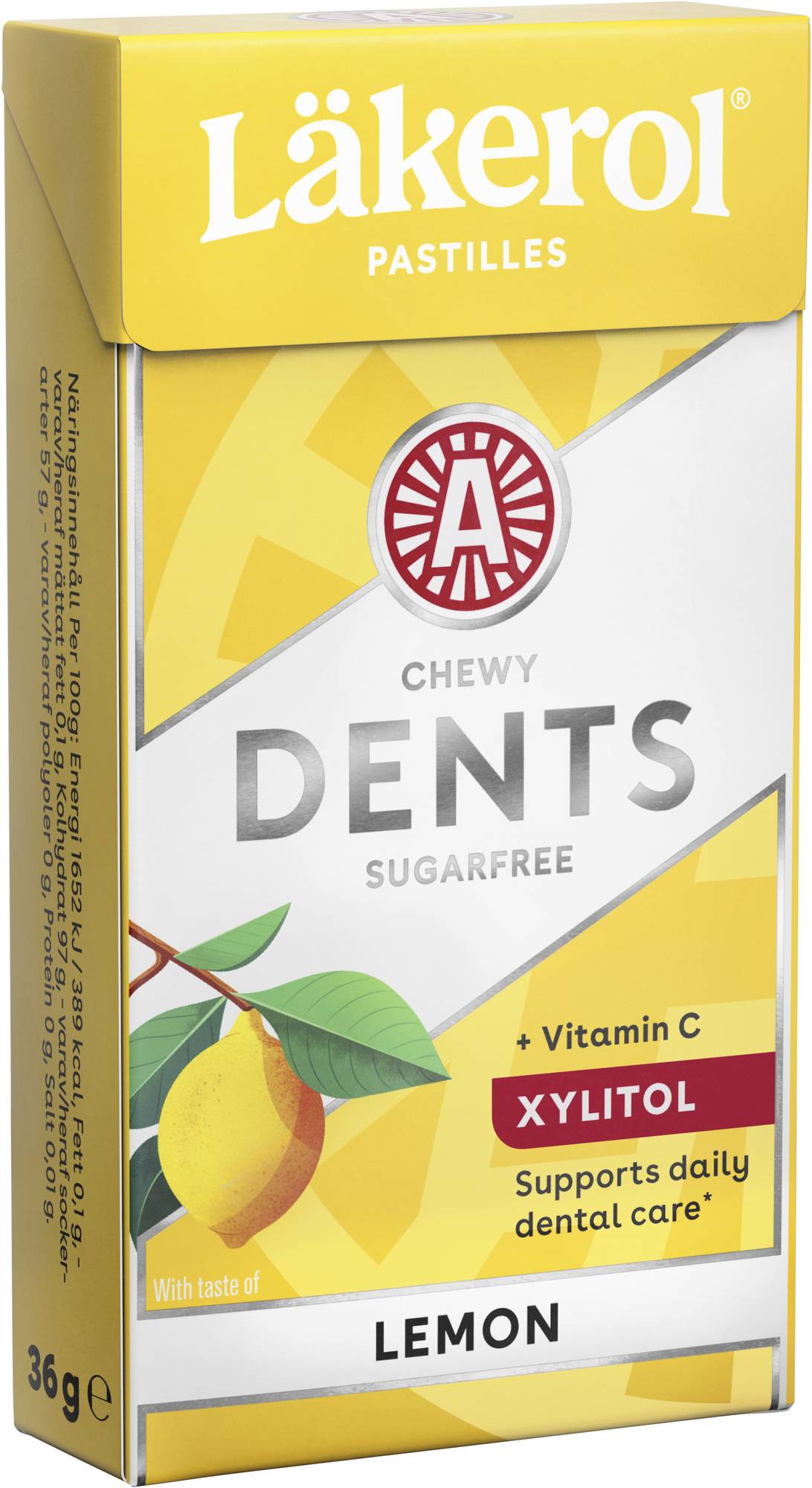 Läkerol Dents Lemon -pastillissa maistuu raikas sitruuna. Pastilleissa on ainutlaatuinen pureskeltavan pehmeä koostumus. Ksylitolia ja maltitolia sisältävien pastillien nauttiminen edistää hampaiden mineralisaation ylläpitämistä. Mineralisaatio tarkoittaa hammaskiilteen kovettumista.