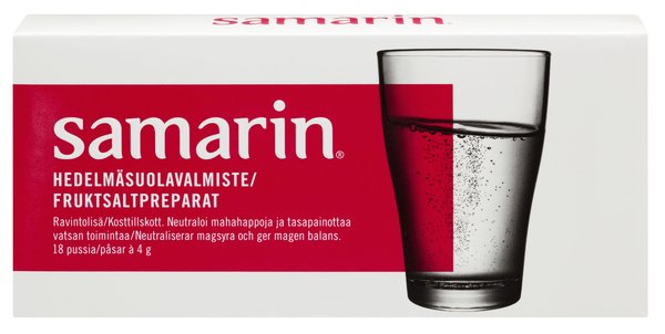 Samarin on virkistävä hedelmäsuolajauhe kiireisiin päiviin, kun ateriarytmisi on epäsäännöllinen tai kun olet ylensyönyt. Se sisältää luontaisia hedelmäsuoloja.