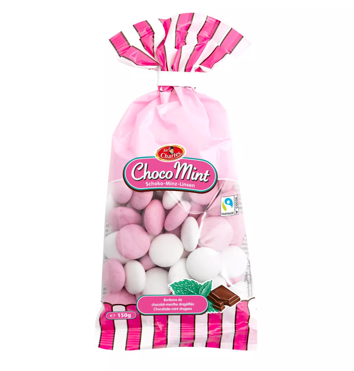 Sir Charles Suklaadrageet Mintunmaulla 150g Valkoiset ja vaaleanpunaiset mintunmakuiset suklaadrageet sopivat täydellisesti kakkujen ja jälkiruokien koristeluun – tai nautittavaksi sellaisenaan... Lue lisää