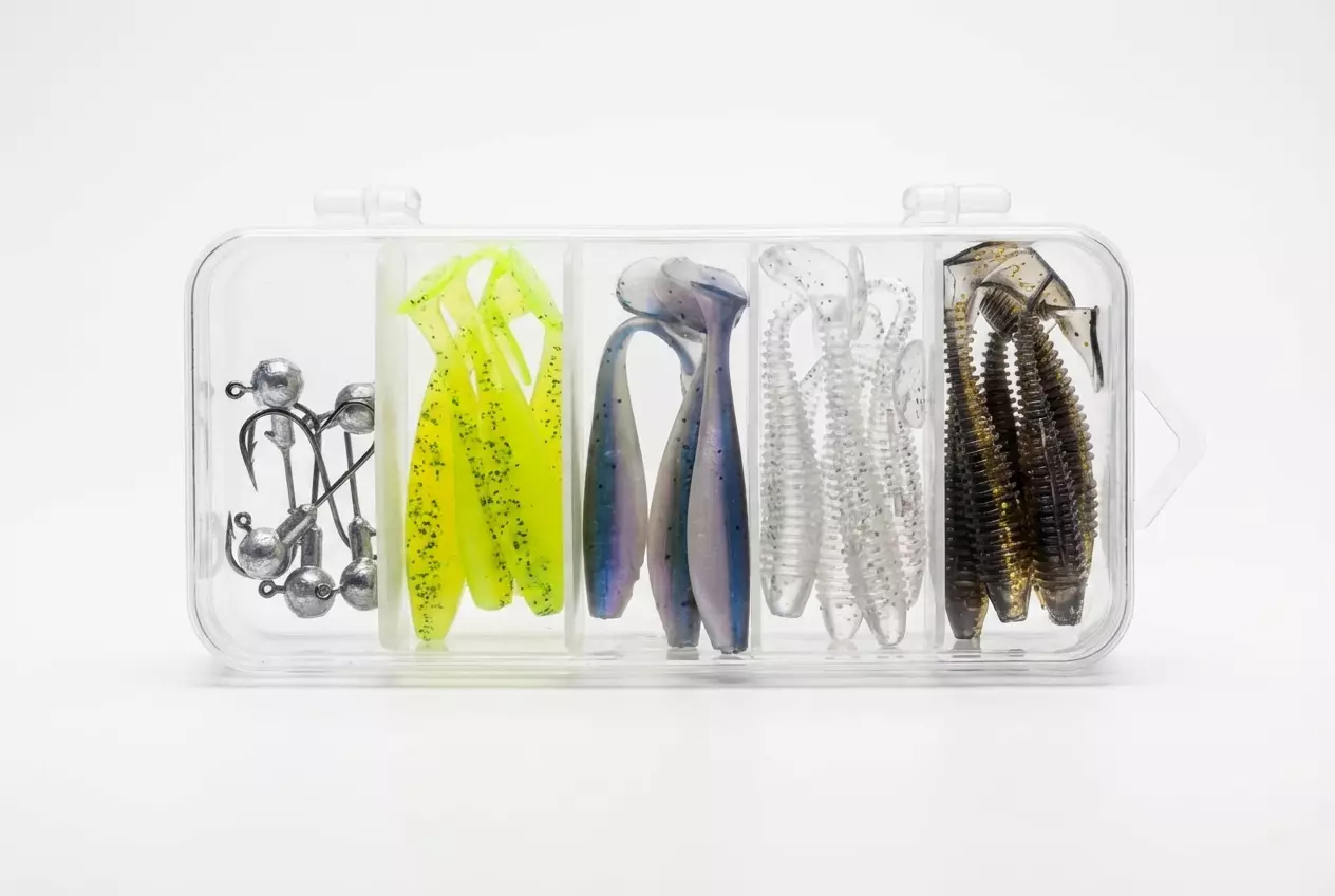 Monipuolinen jigisetti ahvenen kalastukseen sisältää runsaasti erilaisia jigejä sekä valmiit jigipäät tehokkaaseen kalastukseen. Setti sopii erinomaisesti niin aloittelijalle kuin kokeneemmallekin kalastajalle.
