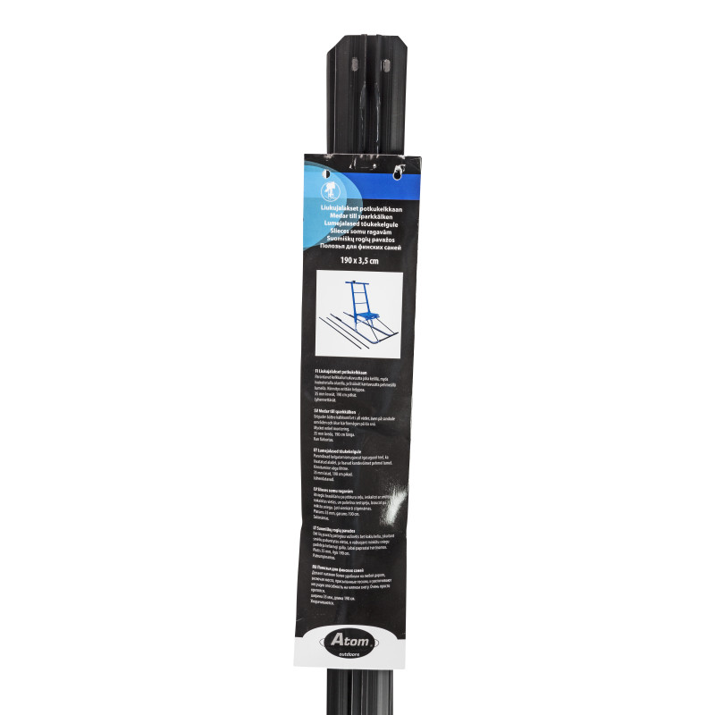Leveys 35 mm, pituus 190 cm. Lyhennettävät. Kiinnitys erittäin helppo.
