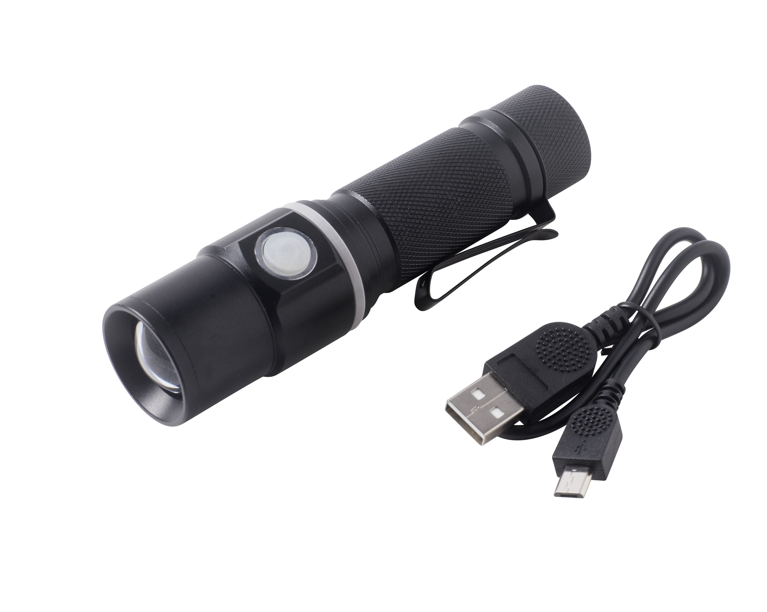 Taskulamppu led-valonlähteellä. 3W 200lm. USB-ladattava.