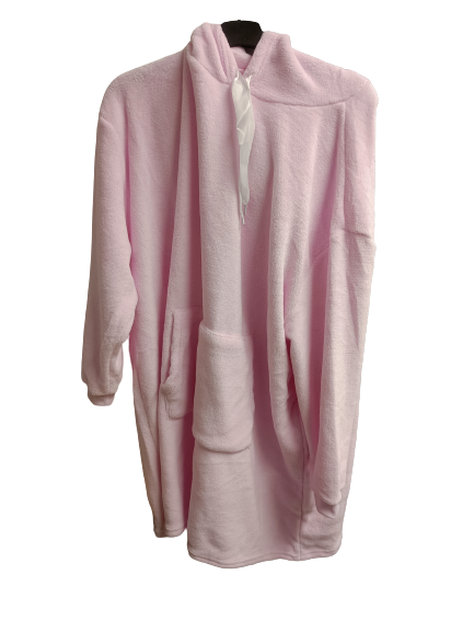 Pehmeän ja ylellisen tuntuinen coral fleece -maxihuppari on mukava pukea päälle talven hyytävillä keleillä. Se on kokoa oversized, eli yli-iso.