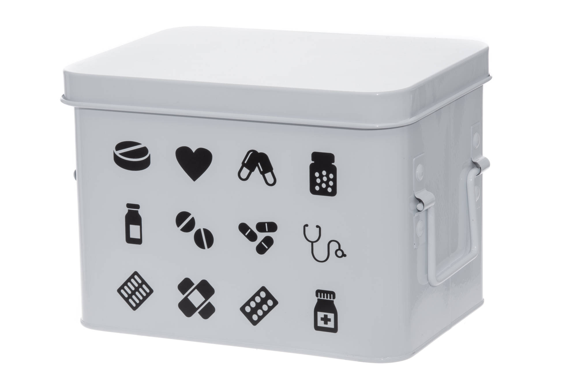 Metallinen lääkelaatikko lääkkeiden ja ensiaputarvikkeiden säilyttämiseen. Laatikossa on yksi isompi lokero ja kolme pienempää. Ethän jätä laatikkoa lasten tai lemmikkieläinten... Lue lisää