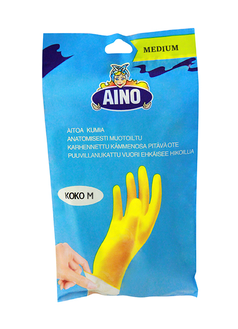 Aino talouskäsineet on valmistettu aidosta kumista.