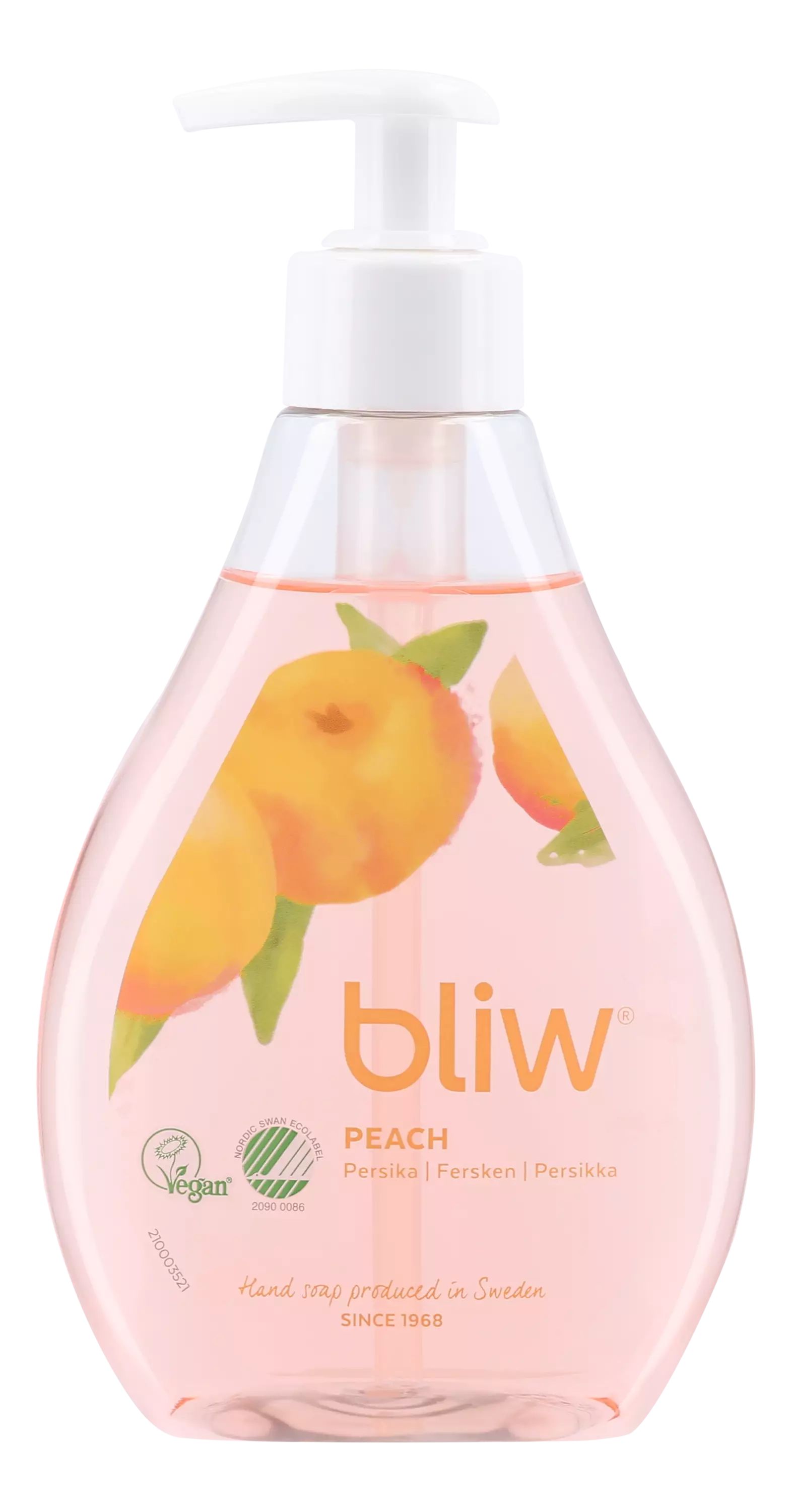 Bliw Persikka on mieto ja hellävarainen käsisaippua, joka kosteuttaa ihoa ja puhdistaa tehokkaasti. Pehmeä vaahto ja raikas persikan tuoksu tekevät käsienpesusta miellyttävää. Vegaaninen ja Joutsenmerkitty valinta.