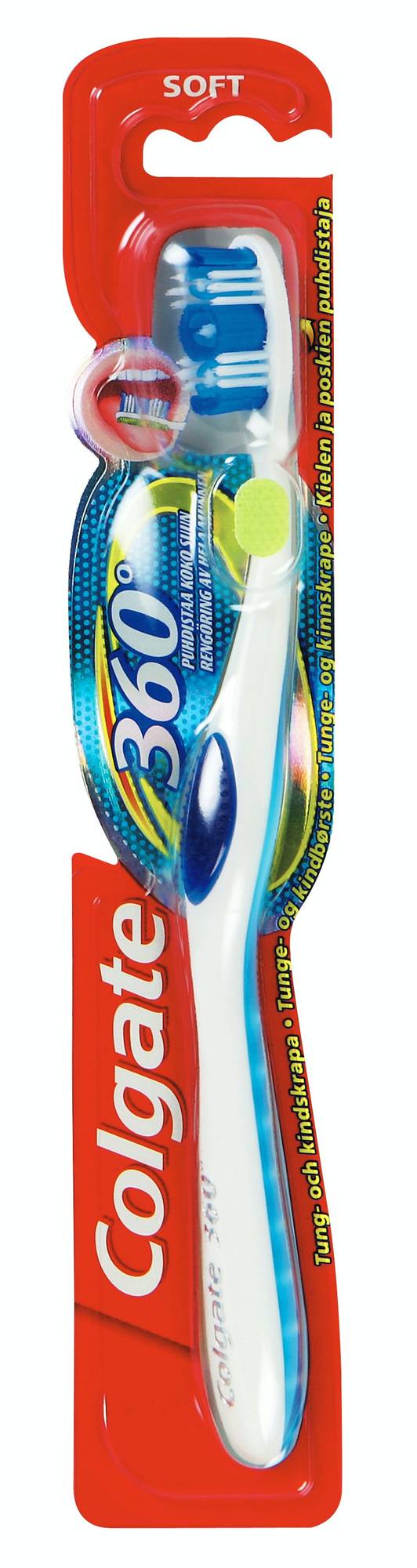 Huolehdi suusi kokonaisvaltaisesta hyvinvoinnista Colgate 360° hammasharjalla, joka sisältää yhdistelmän ominasuuksia puhdistamaan suusi läpikotaisin. Harjan posken- ja kielenpuhdistaja auttaa poistamaan enemmän pahanhajuista hengitystä aiheuttavia bakteereja* ja sen harjakset jättävät hampaasi kirkkaiksi poistamalla enemmän plakkia ja värjäytymiä kuin tavallinen, tasaharjaksinen hammasharja. Hammasväliharjakset puhdistavat hampaiden väleistä ja ienrajasta, ja ergonominen kahva on miellyttävä käyttää ja helppo liikutella.