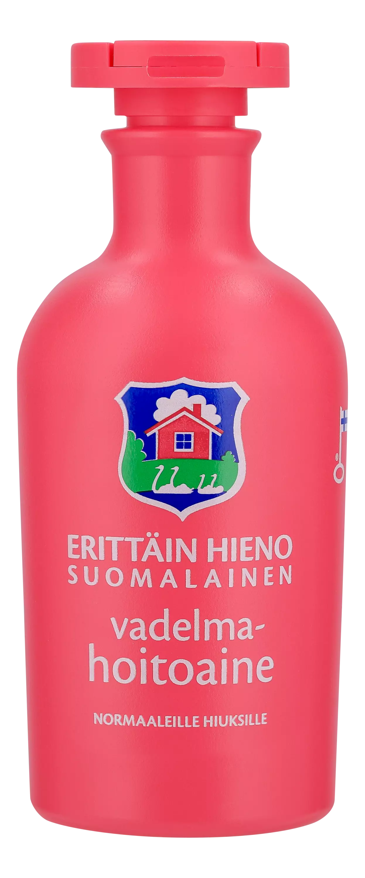 Vadelmauutetta sisältävä hoitoaine tekee hiuksista pehmeät ja helposti kammattavat. Hiukset tuntuvat raikkailta ja hyvinvoivilta. Valmistettu Suomessa ja merkitty Avainlipulla.