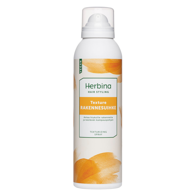 Herbina Texture -rakennesuihke antaa hiuksille rakennetta ja välittömän tyvikohotuksen tehden hiuksista tuuheamman näköiset. Tuote antaa myös kestävän kampauspohjan, tekee hiuksista helpommin käsiteltävät ja vähentää hiusten sähköisyyttä. Antaa hiuksille runsautta ja pitoa.