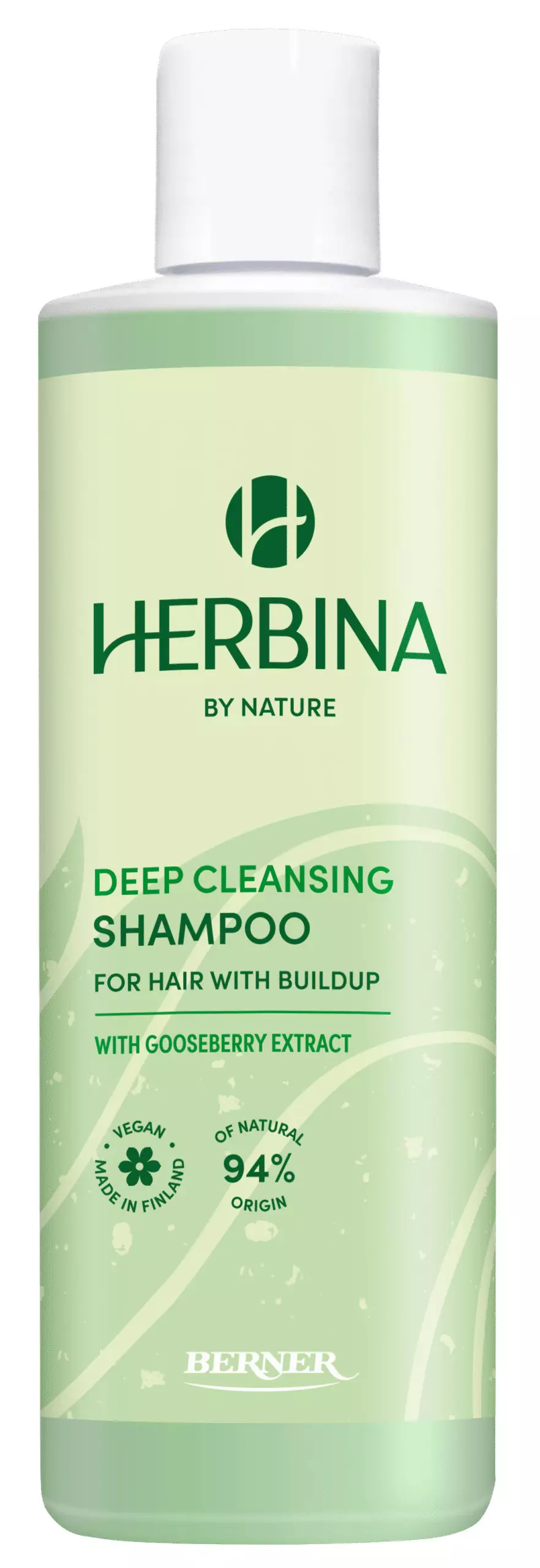 Herbina Deep Cleansing Shampoo puhdistaa tehokkaasti hiuspohjan ja hiukset, poistaen ylimääräisen rasvaisuuden, muotoilutuotteiden jäämät, metalli-ionit sekä veden aiheuttamat värjäymät ja epäpuhtaudet. Virkistävä karviaismarjan tuoksu tuo raikkaan tunteen, ja karviaisuutetta sisältävä koostumus kosteuttaa ja hoitaa hiuksia samalla tehden niistä ilmavan ja kevyen tuntuiset.