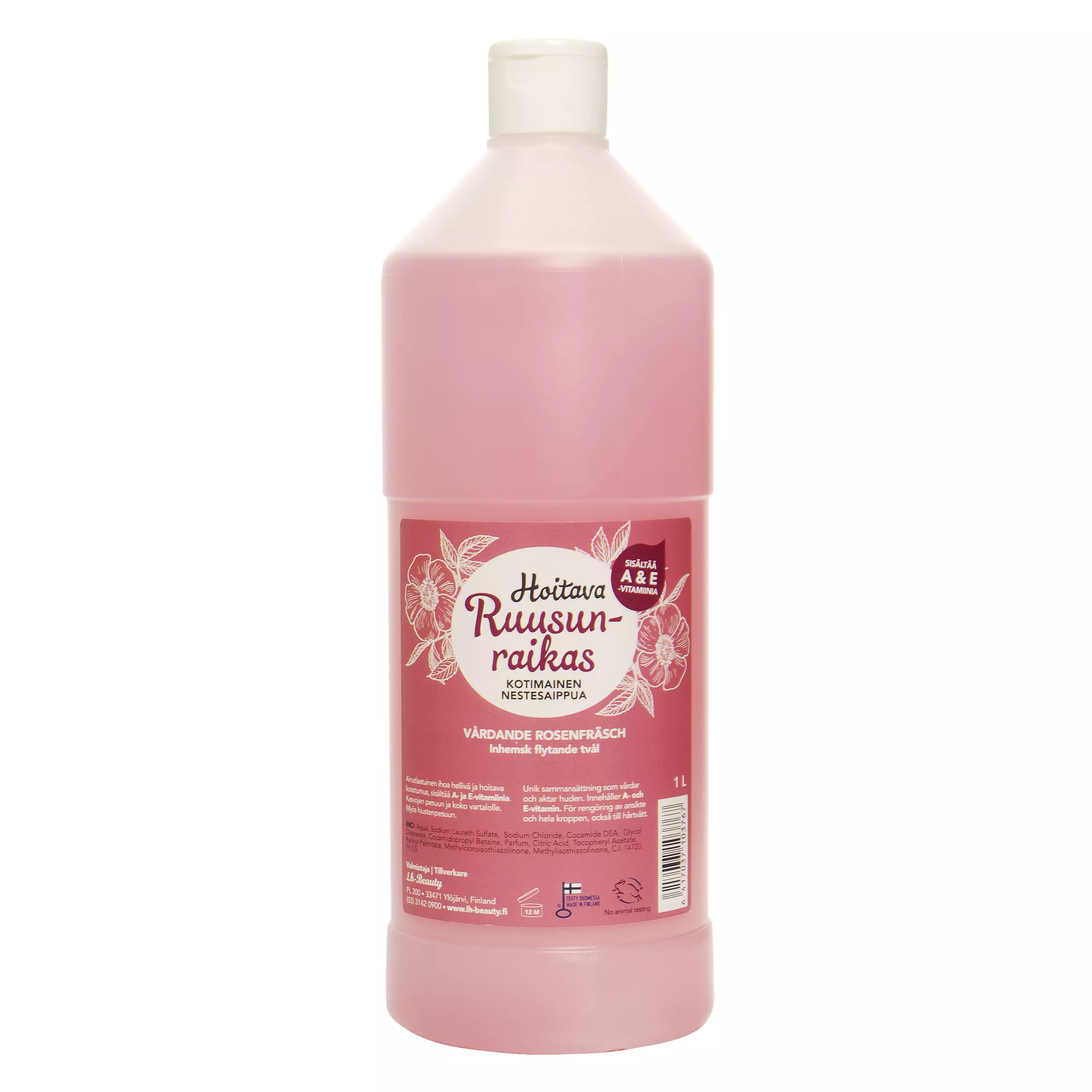 Mieto nestesaippua päivittäiseen käsien ja kasvojen pesuun.Sisältää iholle tärkeitä B3-, B5-, C- ja E-vitamiineja sekä glyseriiniä. Miedosti hajustettu, pH 5,5. Koko: 1000 ml