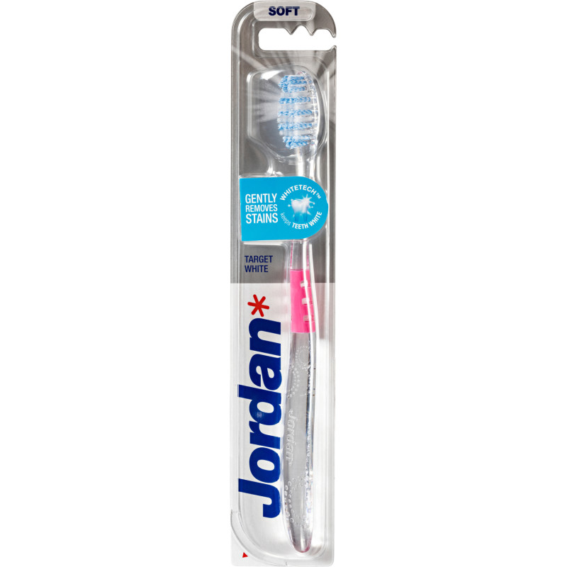 Jordan Target White on valkaiseva hammasharja. Whitetech™ harjakset poistavat tehokkaasti tummentumia. Harjassa on ActiveTip sekä pieni harjaspää tehokkaaseen puhdistukseen ja ulottuvuuteen erityisesti suun takaosassa.