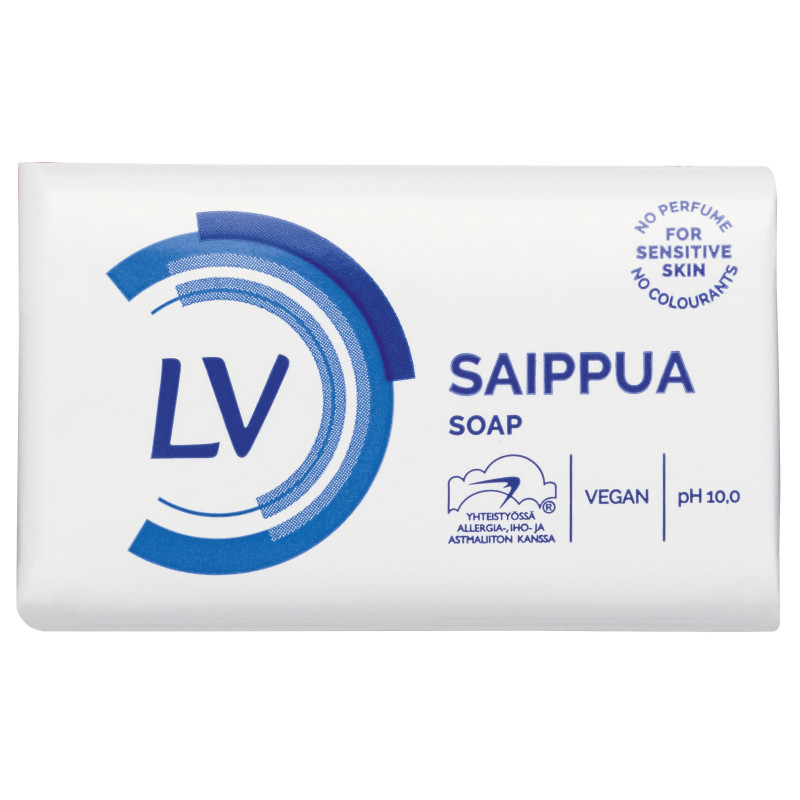 Jo yli 50 vuotta sitten kehitetty LV Palasaippua on LV-tuotesarjan ensimmäinen tuote. LV palasaippua on hellävarainen koko perheen saippua. Saippua soveltuu käsien ja kehon usein toistuvaan pesuun. Myös herkälle iholle soveltuva saippua ei sisällä lainkaan hajusteita tai väriaineita. Hellävaraisille LV-tuotteille on myönnetty Allergia- ja Astmaliiton tunnus. Pakkauskoko 100 g.