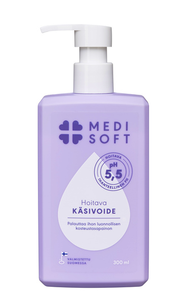Miedon tuoksuinen käsivoide päivittäiseen käyttöön. Glyseriini hoitaa ihoa. Sheavoi suojaa ja kosteuttaa. pH 5,5 auttaa palauttamaan ihon luonnollisen pH-arvon ja normaalin kosteustasapainon. Sopii koko perheelle. Avainlippu-tuote, valmistettu Suomessa.