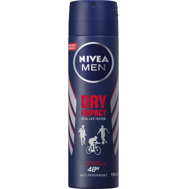 Nivea Men Dry Impact Deo spray antiperspirantti on kehitetty erityisesti vähentämään hikoilua. Saat tehokkaan suojan hikoilua vastaan koko päivän ajaksi. Hellävarainen ja ihoystävällinen... Lue lisää