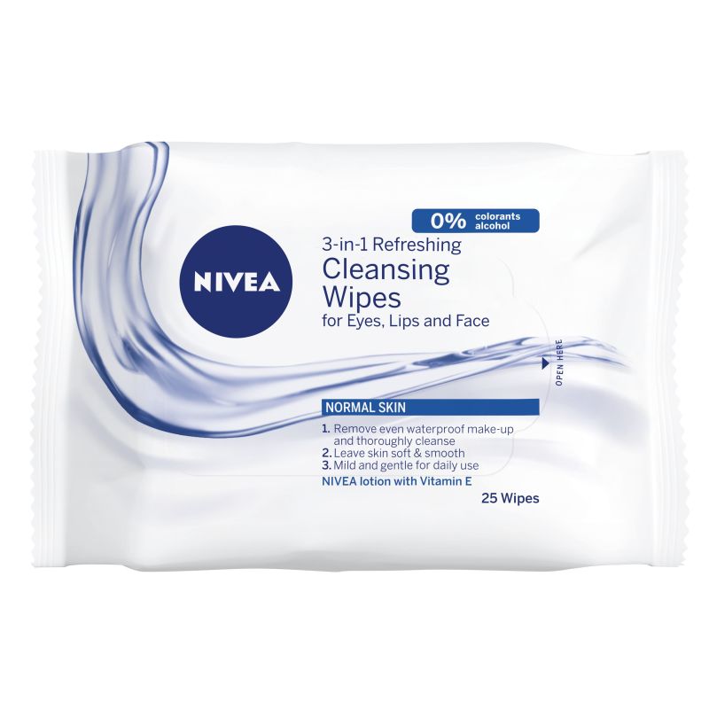 Helppokäyttöiset Nivea Daily Essentials Refreshing Cleansing Wipes -puhdistuliinat on kehittety erityisesti normaalin ihon tarpeisiin. Puhdistusliinat poistavat kasvoilta meikin, sekä kosteuttavat ja puhdistavat ihoa. E-vitamiinia ja kosteuttavan Hydra IQ -koostumuksen sisältävät puhdistusliinat kosteuttavat ja raikastavat ihoa saaden sen näyttämään kauniilta ja terveeltä. Voit poistaa liinoilla myös jopa vedenkestävän ripsivärin. Pakkauskoko 25 kpl.
