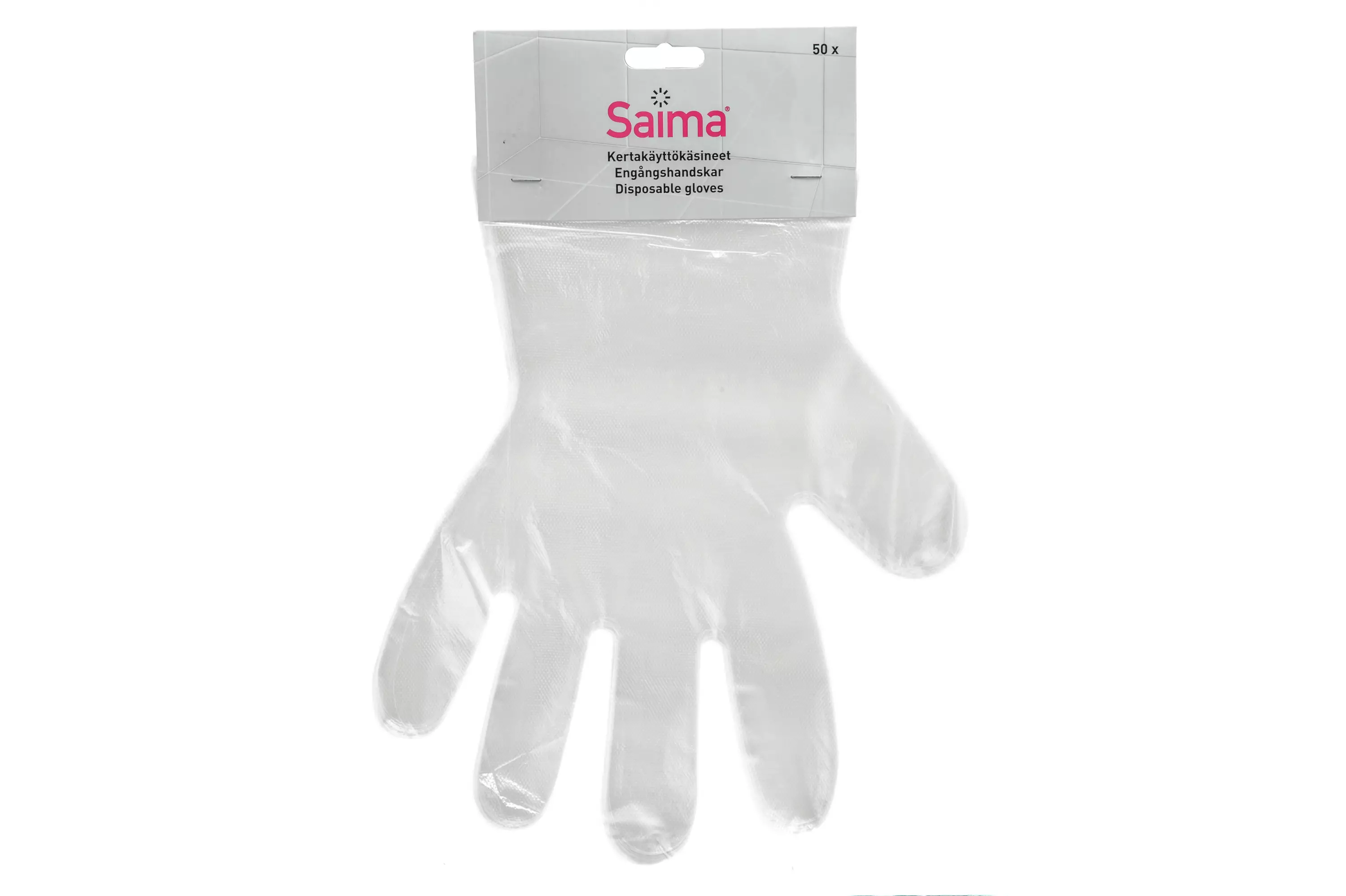 Saima kertakäyttöhanska soveltuu monenlaiseen käyttötarkoitukseen. Se suojaa käsiä mm. siivouksessa, hiustenhoidossa, lemmikkien pesussa ja puutarhan hoidossa. Yksi koko. Pakkauksessa on 50 kpl.