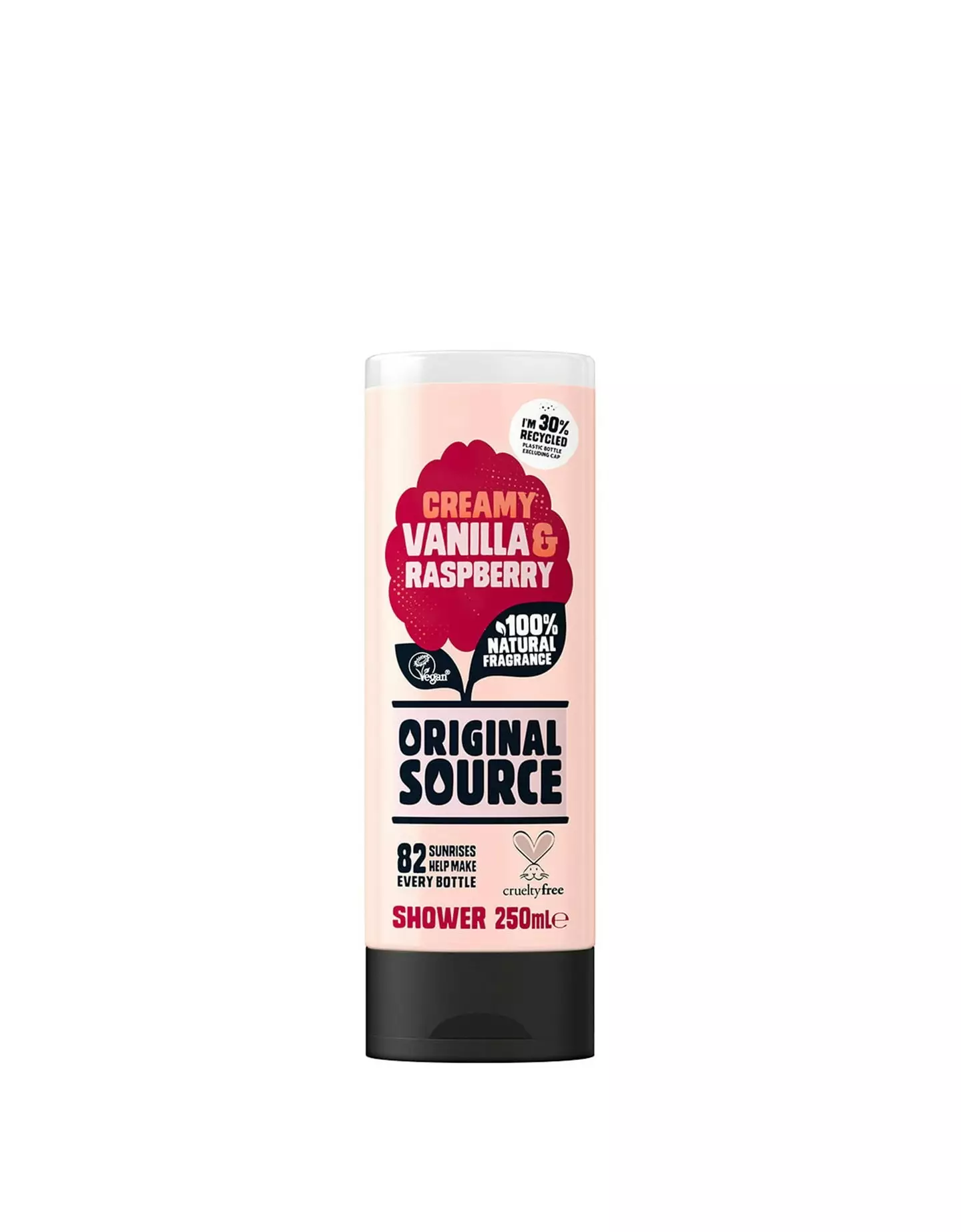 Original Source Creamy Vanilla & Raspberry -suihkugeeli tarjoaa kosteuttavan ja ylellisen pesukokemuksen, joka jättää ihon pehmeäksi ja hurmaavan makean tuoksuiseksi. Jokainen pullo sisältää vadelmia, jotka on poimittu ja puristettu 82 brittiläisen auringonnousun kypsymisen jälkeen, yhdistettynä samettiseen vaniljaan – täydellinen yhdistelmä arjen piristykseen.