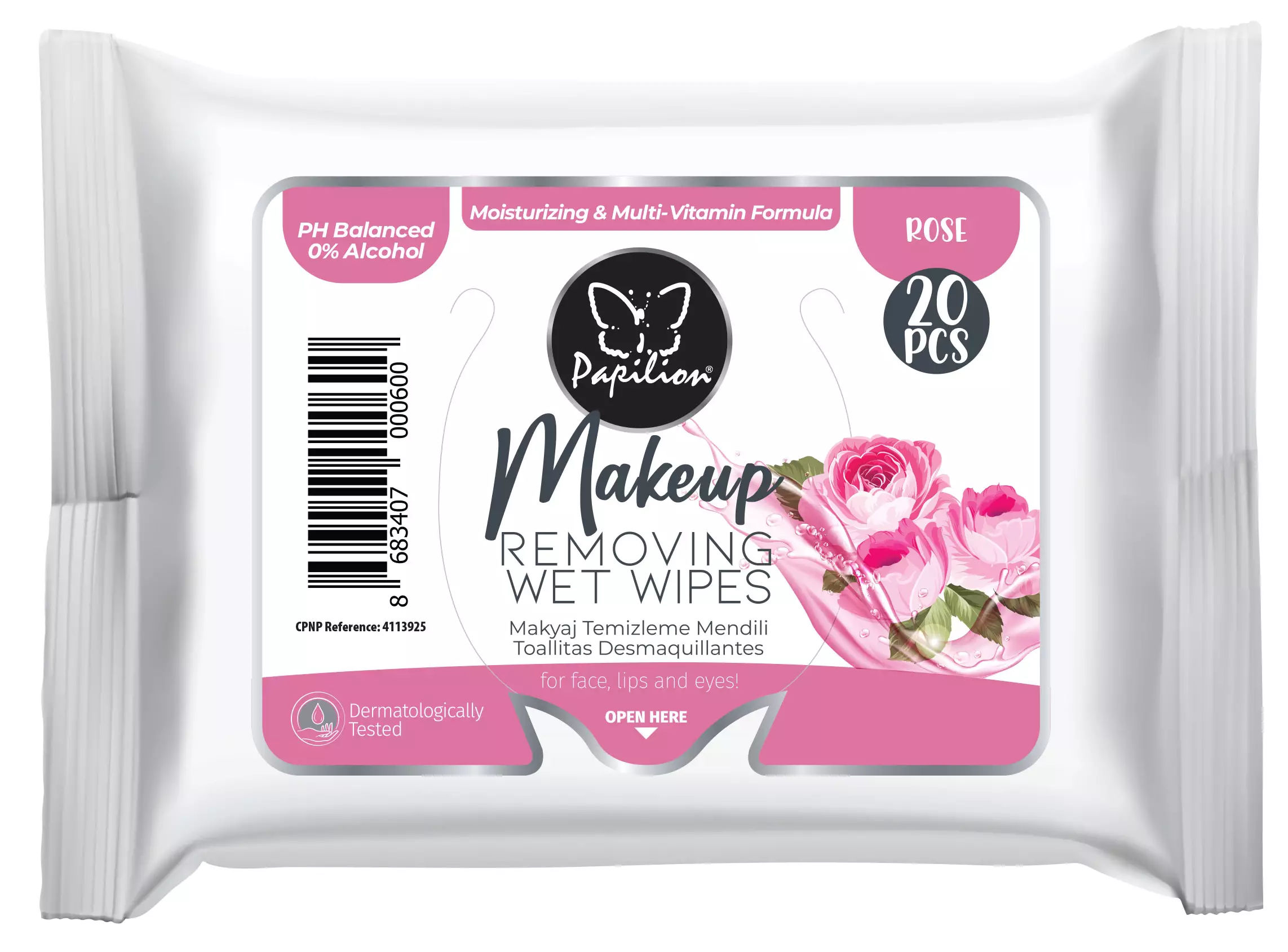 Papilion-meikinpoistopyyhkeet on valmistettu 100 % kasvipohjaisista kuiduista, ja ne eivät sisällä parabeeneja, sulfaatteja tai alkoholia. Pyyhkeet puhdistavat ihon tehokkaasti poistamalla bakteereja, epäpuhtauksia ja meikin, jättäen ihon puhtaaksi ja raikkaaksi ilman raskasta tai tahmaista tunnetta.