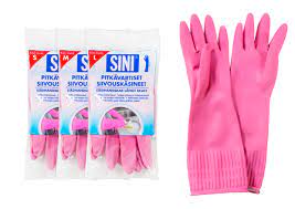 Pitkävartiset siivouskäsineet on muotoiltu anatomisesti, joten ne helppo pukea ja mukavat käyttää. Käsineen pitkä varsi suojaa myös käsivartta ja käsineen kuvioitu pinta takaa pitävän otteen. Pirteän pinkit siivouskäsineet on valmistettu lateksista ja ne on CE-hyväksytty.
