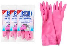 Pitkävartiset siivouskäsineet on muotoiltu anatomisesti, joten ne helppo pukea ja mukavat käyttää. Käsineen pitkä varsi suojaa myös käsivartta ja käsineen kuvioitu pinta takaa pitävän otteen. Pirteän pinkit siivouskäsineet on valmistettu lateksista ja ne on CE-hyväksytty.