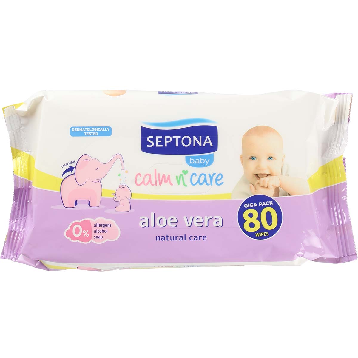 Hellävaraiset Septona-kosteuspyyhkeet miedolla tuoksulla ja rauhoittavalla Aloe Veralla. Puhdistuspyyhkeet sopivat vauvojen herkän ihon puhdistukseen ja pyyhkimiseen. Alkoholittomat kosteusliinat on testattu dermatologisesti.