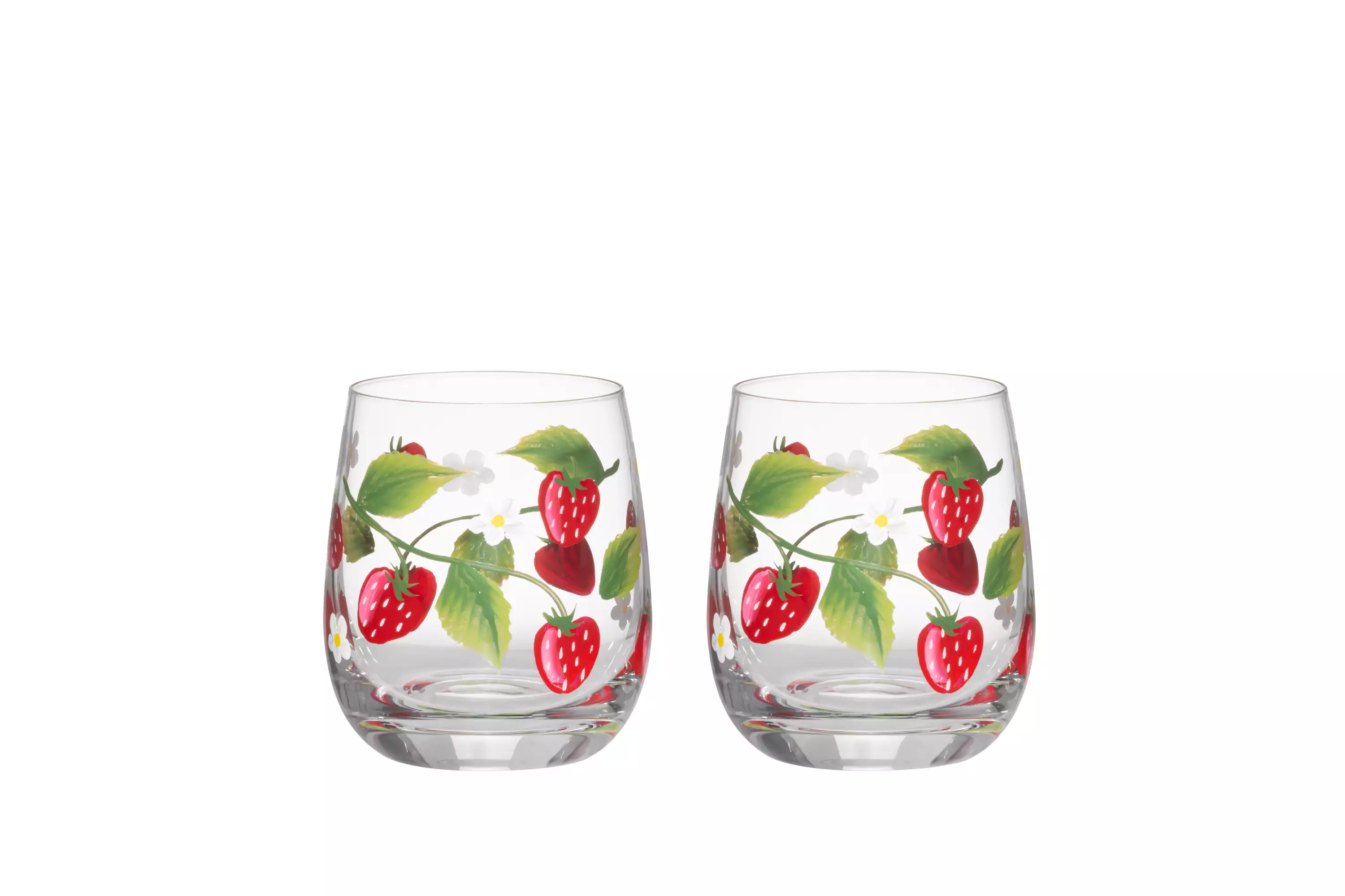 Mansikkakuvioinen juomalasi, vetoisuus 35 cl.