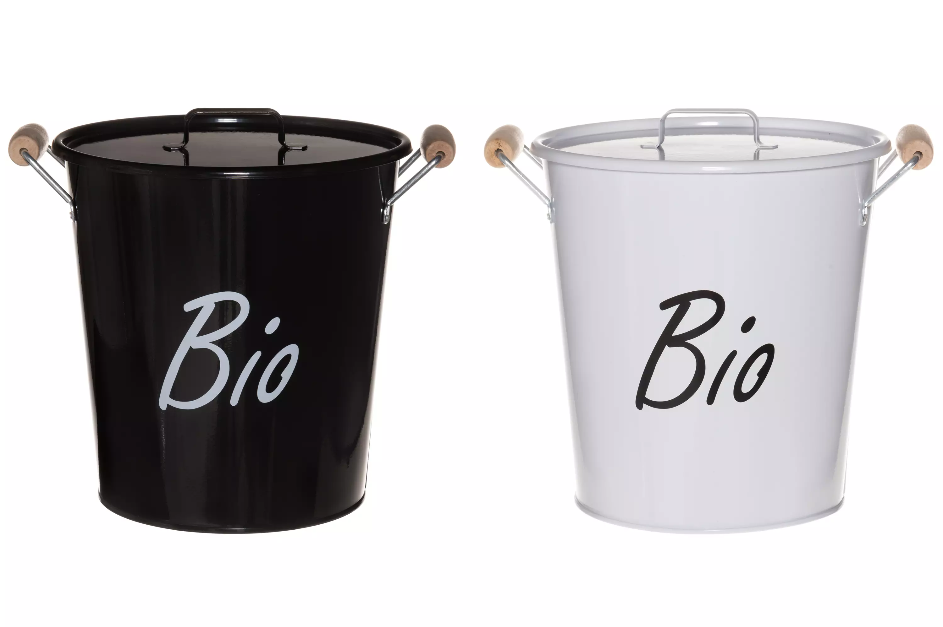 Yksinkertaisen tyylikäs metallisanko biojätteelle. Puiset kädensijat.