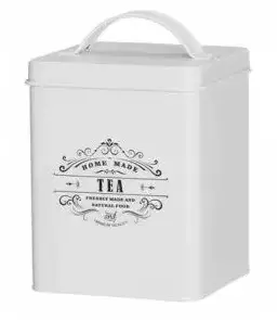 Metallinen mustavalkoinen säilytyspurkki. Koko 12 x 12 x 17 cm.