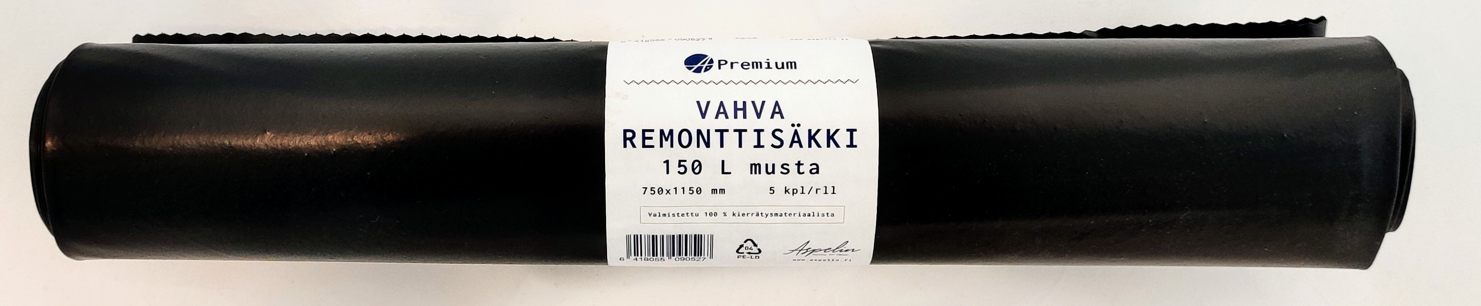 A.Premium Vahva Remonttisäkki 150 L, musta , 5 kpl/rll