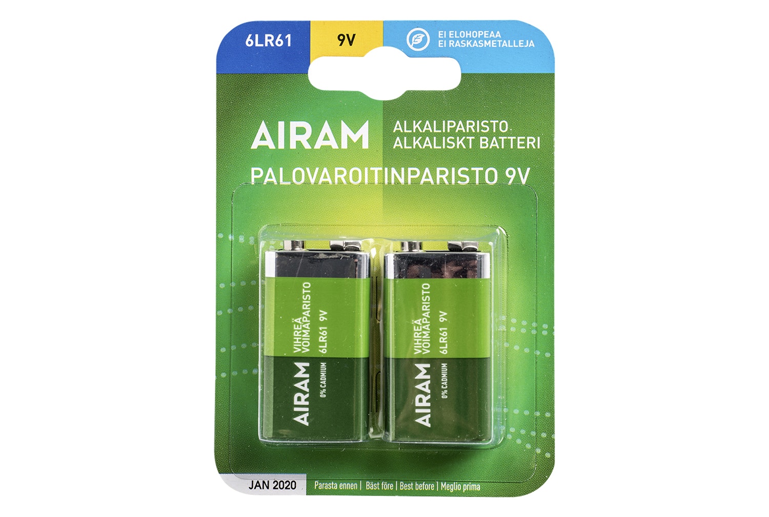 Airam Vihreä voimaparisto alkali 6LR61( palovaroitinparisto) 9V/2 kpl kortti