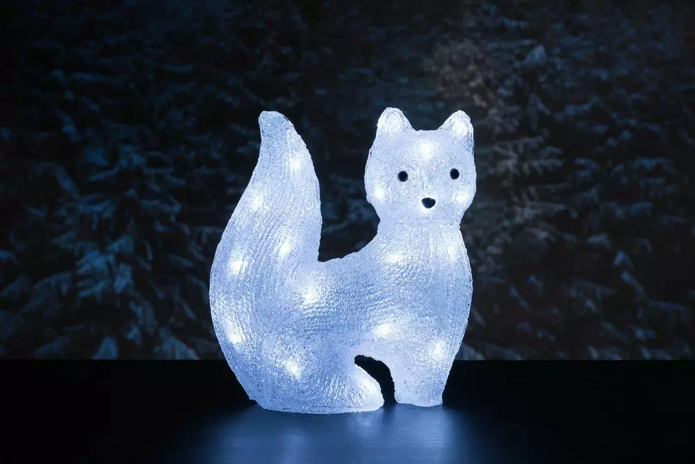 Soma valkoinen akryylikettu hohtaa kauniisti osana jouluista/talvista koristeasetelmaa tai itsenäisenä yksityiskohtana. Soveltuu niin ikkunalle, parvekkeelle kuin pihallekin. 30 kpl valkoinen LED. 5 m liitosjohto. Muuntaja 220-240V 50-60Hz 300mA, 4,5V 50Hz 1,35W, IP44. Sisä- ja ulkokäyttöön.