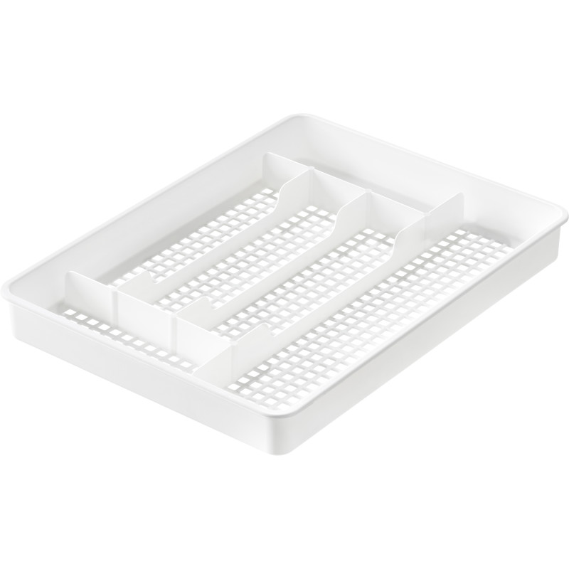 Reilunkokoinen aterinlaatikko, jossa 6 lokeroa. Aterimet, keittiöveitset sekä muut keittiötyövälineet pysyvät siististi järjestyksessä. Mitat: 41 x 31 x 5 cm Väri: valkoinen Konepesun... Lue lisää