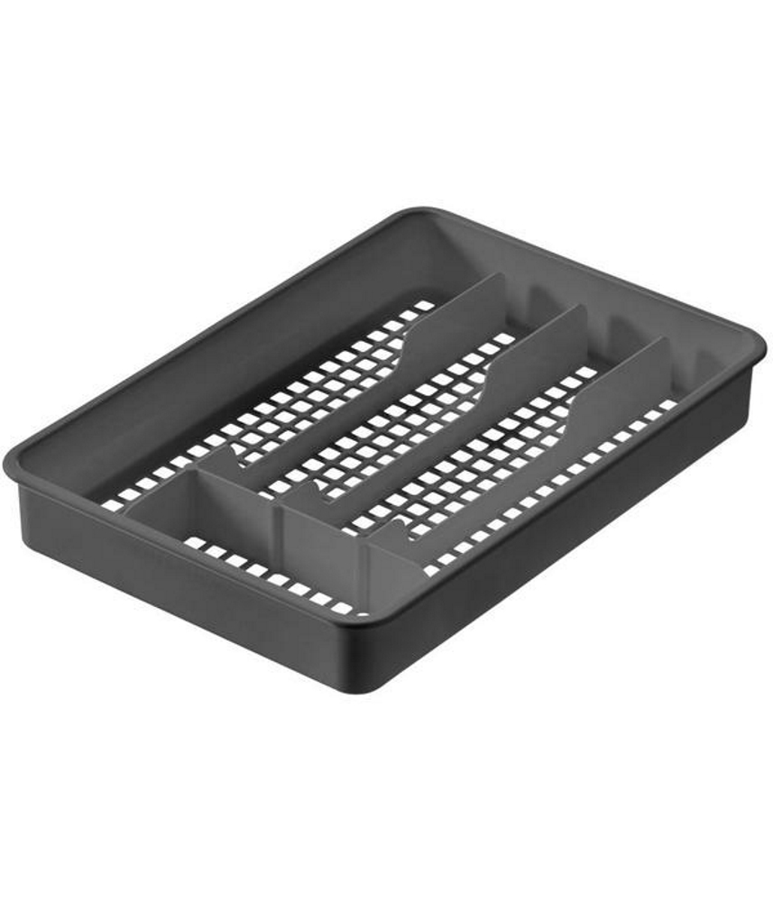 Kätevänkokoinen aterinlaatikko, jossa 5 lokeroa. Aterimet, keittiöveitset ja teelusikat pysyvät siististi järjestyksessä. Väri: Tummanharmaa.