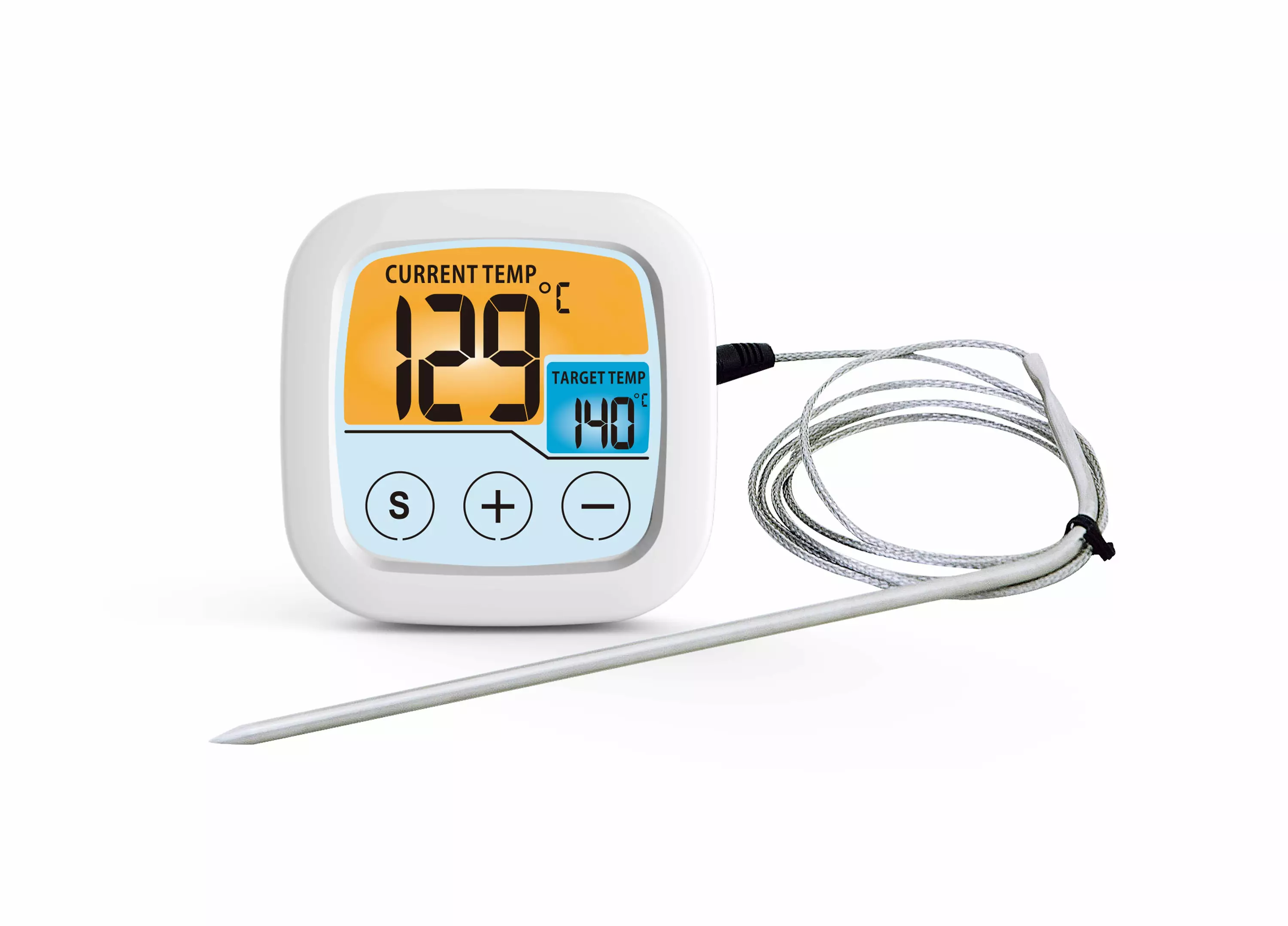 Paina teräsanturi paistokseen ja aseta lämpötila. Mittari hälyttää, kun paistos on valmis. Mittarissa on valaistu kosketusnäyttö, joten se on helppo pyyhkäistä puhtaaksi. Käyttöohjeessa on suositeltavat paistolämpötilat lihalle ja kalalle. Mittausalue on -30..+300°C. Ruostumaton teräsanturi on 16 cm pitkä ja anturijohdon pituus on noin yksi metri. Näyttöyksikön mitat ovat 75 x 25 x 76 mm. Paristot 2 kpl AAA 1.5V eivät sisälly pakkaukseen.
