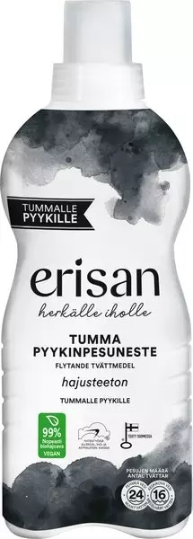 Erisan Tumma pyykinpesuneste on hajusteeton ja väriaineeton, ja sille on myönnetty Allergiatunnus. Sen koostumus on 99 % nopeasti biohajoava, mikä tekee tuotteesta ympäristöystävällisemmän valinnan päivittäiseen pyykinpesuun.