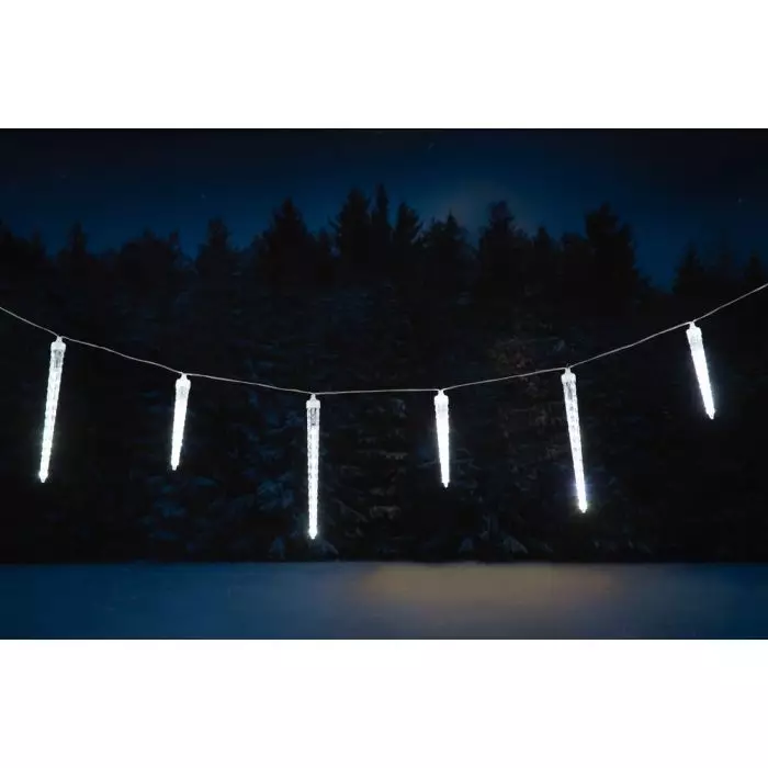 Finnlumor Jääpuikkosarja. 28 cm/22 LED 5 kpl ja 18 cm/16 LED 5 kpl. 5 m liitäntäjohto. IP44-muuntaja sisä- ja ulkokäyttöön.