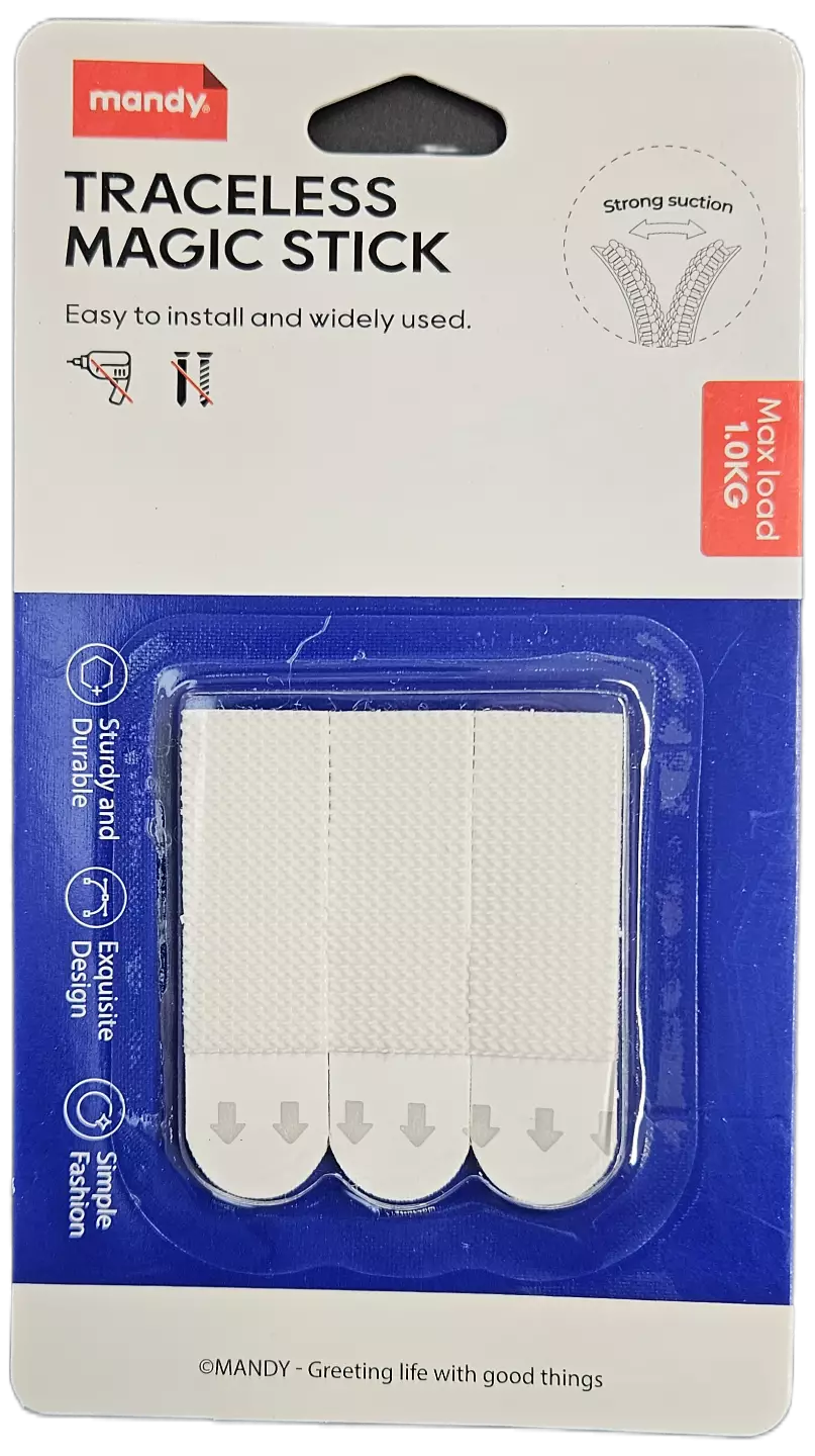 Mandy Traceless Magic Stick – kiinnitystarra, 3 kpl Käytännölliset ja vahvasti kiinnittyvät Traceless Magic Stick -tarrat helpottavat arjen ripustuksia ilman poraamista tai nauloja. Vahva... Lue lisää