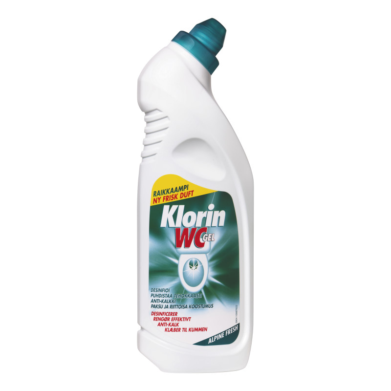 Klorin WC Gel Alpine Fresh on tehokas puhdistusaine, joka poistaa pahat hajut ja ehkäisee kalkkisaostumien muodostumista. Klorin WC geelin sisältämä valkaisuaine desinfioi WC-pöntön ja tekee siitä hygieenisen. Tuoksuu raikkaalta kuin vuoristoilma. Käytä biosideja turvallisesti. Lue aina merkinnät ja valmistetiedot ennen käyttöä.